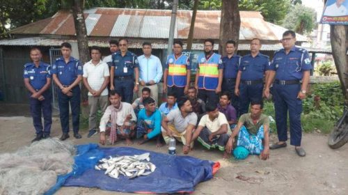 গোয়ালন্দে নৌ পুলিশের অভিযানে ৯ জেলের কারাদণ্ড, জাল জব্দ