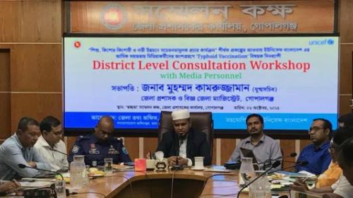 গোপালগঞ্জে মিডিয়া কর্মীদের অংশগ্রহনে টাইফয়েড ভ্যকসিনেশন বিষয়ক ওয়ার্কশপ
