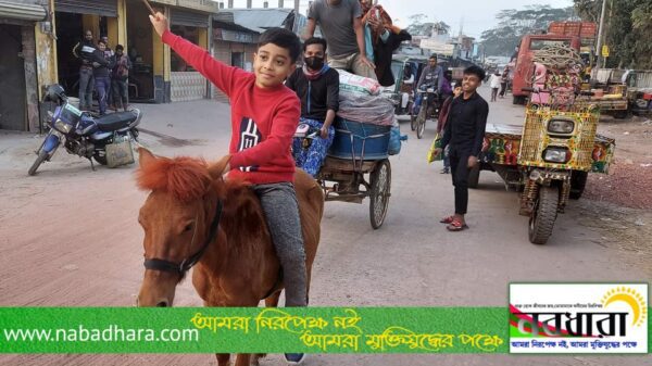 যন্ত্রবাহনের শব্দ দূষণে জীবন যখন অসহনীয়, তখন শিশু আব্দুল্লাহ আল প্রিন্সের ঘোড়ায় চড়ে যাতায়াত মানুষের দৃষ্টি আকর্ষণ করেছে। কয়েক মাস ধরে বাগেরহাটের চিতলমারী উপজেলা সদর বাজারে তাকে বিচরণ করতে দেখা যাচ্ছে। ছেলের বায়না পূরণ করতে বাবা কিনে দিয়েছেন এই ঘোড়া।