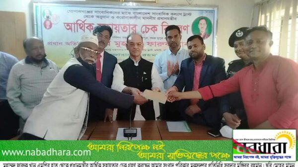 চেক বিতরণ অনুষ্ঠানের প্রধান অতিথি ছিলেন বাংলাদেশ আওয়ামী লীগের প্রেসিডিয়াম মেম্বার মুহাম্মদ ফারুক খান এমপি। এসময় তিনি সাংবাদিক কল্যান ট্রাস্ট থেকে প্রাপ্ত গোপালগঞ্জ জেলায় কর্মরত ৫০ জনকে ১০ হাজার টাকা করে ৫ লাখ এবং একজনকে ১ লাখ টাকার সর্বমোট ৬ লাখ টাকার অনুদানের চেক তুলে দেন।