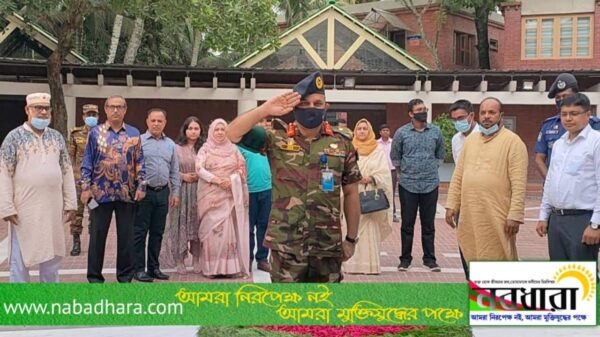 আজ বুধবার জাতির পিতা বঙ্গবন্ধু শেখ মুজিবুর রহমানের সমাধিতে পুস্পমাল্য অর্পন করে শ্রদ্ধা জানান এবং পরে বঙ্গবন্ধু ও ১৯৭৫ সালের ১৫ আগষ্ট তাঁর পরিবারের শহীদ সদস্যদের রুহের মাহফিরাত কামনা করে মোনাজাত করেন।
