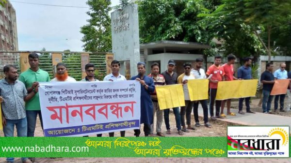 এ সময় ভুক্তোভোগি টিএমটিই প্রশিক্ষনার্থী এবং মুক্তিযোদ্ধা সন্তানদের প্রতি সংহতি জানিয়ে স্থানীয় জনগণ তাদের সাথে মানববন্ধনে যোগ দেন।