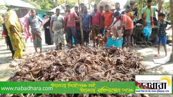 এছাড়া উপজেলার হিজলা গ্রামের ওলি খান নামের এক খামারীর ১২ শ ডিম পাড়া লাল লেয়ার মুরগী ও শাহীন খানের ১১ শ পোট্রী মুরগী মারা গেছে। সোমবার রাত সাড়ে ৮টার দিকে সিত্রাংয়ের আঘাতে মৎস্য ঘেরের উপর নির্মিত মুগীর খামারের ঘর দুটি পানিতে পড়ে যায়। এসময় পানিতে ডুবে ওই দুই খামারীর ১২শ ডিমপাড়া লিয়ার মুরগী ও ১১শ পোল্টী মুরগীর মৃত্যু হয়।