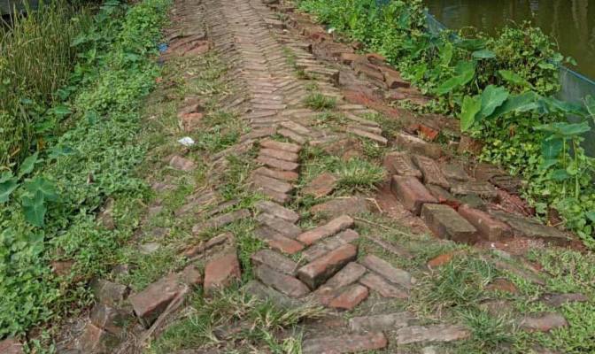 রাস্তাটির প্রবেশ মুখে কয়েক বছর আগে ইউনিয়ন পরিষদ আংশিক ইটের সলিং নির্মাণ করলেও তা এখন ভেঙে–চুরে পুকুরগর্ভে বিলীন হওয়ার পথে।