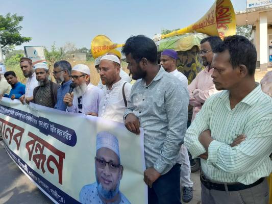 বৃহস্পতিবার সকালে উপজেলা জামায়াতে ইসলামীর উদ্যোগে আয়োজিত মানববন্ধনে জামায়াতে ইসলামী কেন্দ্রীয় মজলিসে শুরা সদস্য ও গাজীপুর মহানগর জামায়াতে ইসলামীর নায়েবে আমির গাজীপুর-৫ আসনে জামায়াত ইসলামী মনোনীত সংসদ সদস্য প্রার্থী মো. খায়রুল হাসান এ সব কথা বলেন।