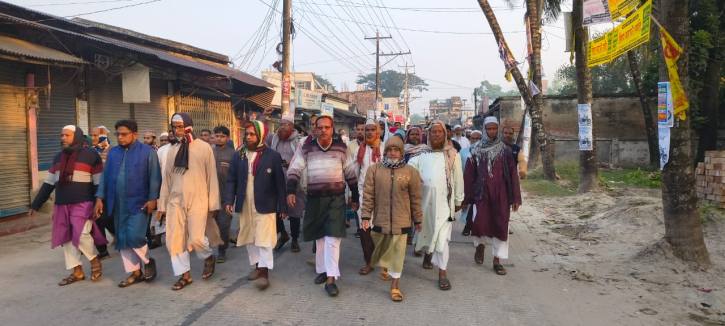 বৃহস্পতিবার (১৩ নভেম্বর) সকালে তালা উপজেলা জামায়াতের আয়োজনে একটি বিশাল মিছিল উপজেলার প্রধান প্রধান সড়ক প্রদক্ষিণ করে। পরে এক পথসভায় বক্তারা বলেন, তথাকথিত রাজনৈতিক সংগঠন বাংলাদেশ আওয়ামী লীগ ও তাদের সহযোগী ছাত্র সংগঠন ছাত্রলীগ দেশজুড়ে অবৈধ ও উসকানিমূলক কর্মসূচি ঘোষণা করে জনগণের মাঝে অস্থিরতা সৃষ্টি করছে। এ ধরনের কর্মসূচির মাধ্যমে প্রশাসনিক বিশৃঙ্খলা ও সাধারণ মানুষের দুর্ভোগ বাড়ানোর চেষ্টা চালানো হচ্ছে বলেও অভিযোগ করেন তারা।