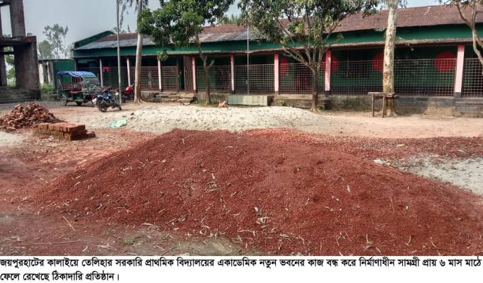 জয়পুরহাটের কালাই উপজেলার তেলিহার সরকারি প্রাথমিক বিদ্যালয়ের মাঠে দেড় বছর ধরে ঠিকাদারি প্রতিষ্ঠানের নির্মাণসামগ্রী ফেলে রাখার কারণে খেলাধুলা বন্ধ হয়ে গেছে কোমলমতি শিক্ষার্থীদের। এতে শিক্ষার্থীদের পড়াশোনার পাশাপাশি মানসিক বিকাশেও নেতিবাচক প্রভাব পড়ছে বলে জানিয়েছেন শিক্ষক এবং অভিভাবকেরা।
