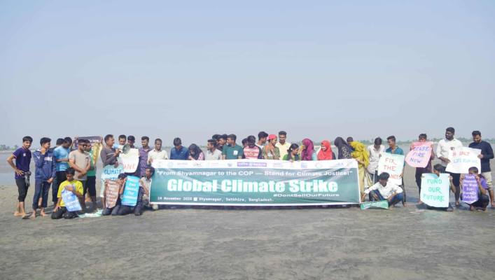 বিশ্বব্যাপী পালিত গ্লোবাল ক্লাইমেট স্ট্রাইকের অংশ হিসেবে সাতক্ষীরার শ্যামনগরে অনুষ্ঠিত হয়েছে এক অনন্য জলবায়ু ধর্মঘট।