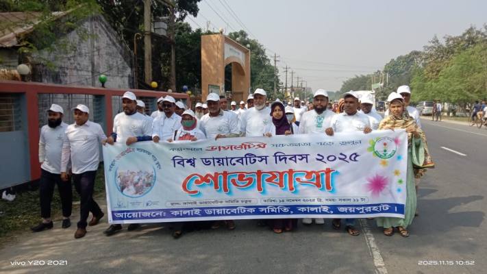 “কর্মস্থলে ডায়াবেটিস সচেতনতা গড়ে তুলুন” প্রতিপাদ্যে জয়পুরহাটের কালাইয়ে বিশ্ব ডায়াবেটিস দিবস ২০২৫ উপলক্ষে র্যালি, আলোচনা সভা ও ফ্রি ক্যাম্পেইন অনুষ্ঠিত হয়েছে।