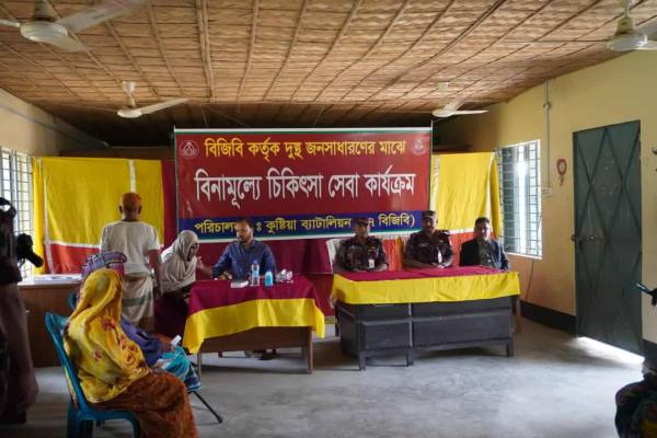 সীমান্তবর্তী ওই এলাকার ভৌগোলিক বিচ্ছিন্নতা ও চিকিৎসা সুবিধার স্বল্পতার কারণে সাধারণ মানুষের চিকিৎসা গ্রহণ অত্যন্ত কঠিন হয়ে পড়ে। এ পরিস্থিতি বিবেচনায় নিয়ে বিজিবির বিশেষজ্ঞ মেডিকেল টিমের মাধ্যমে প্রায় ১৩৫ জন নারী, পুরুষ, শিশু ও বয়স্ক ব্যক্তিকে বিনামূল্যে স্বাস্থ্য পরীক্ষা, প্রয়োজনীয় চিকিৎসা পরামর্শ এবং বিভিন্ন প্রকার ঔষধ প্রদান করা হয়। বয়স্ক রোগী, শিশু ও নারীদের স্বাস্থ্য জটিলতাকে অগ্রাধিকার দিয়ে চিকিৎসা প্রদান করা হয়।