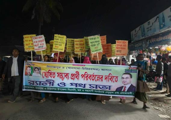 দিনাজপুর-৪ (খানসামা–চিরিরবন্দর) আসনে সম্ভাব্য প্রার্থী পরিবর্তনের দাবিতে খানসামা উপজেলায় র্যালি, মৌন মিছিল ও মতবিনিময় সভা অনুষ্ঠিত হয়েছে।
