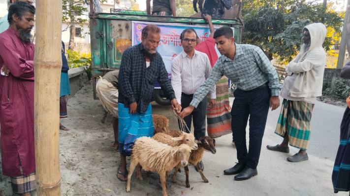 অনুষ্ঠান শেষে অতিথিরা সুফলভোগীদের হাতে ভেড়া হস্তান্তর করেন।