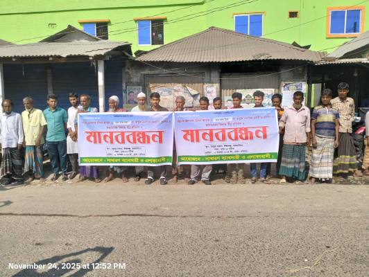 ময়মনসিংহের ঈশ্বরগঞ্জ উপজেলার মধুপুর বাজারে দীর্ঘদিনের জমি-সংক্রান্ত বিরোধকে কেন্দ্র করে এক পরিবারের ওপর হামলা ও ভয়ভীতি প্রদর্শনের অভিযোগ উঠেছে। আদালতের রায় নিজেদের পক্ষে থাকার পরও প্রতিপক্ষ জোরপূর্বক সম্পত্তি দখলের চেষ্টা এবং প্রাণনাশের হুমকি দিচ্ছে বলে দাবি করেছেন ভুক্তভোগীরা। এ পরিস্থিতিতে জীবনের নিরাপত্তা ও পৈতৃক সম্পত্তি উদ্ধার দাবিতে সোমবার (২৪ নভেম্বর) দুপুরে স্থানীয় ব্যবসায়ী ও এলাকাবাসীকে সঙ্গে নিয়ে মানববন্ধন করেছে পরিবারটি।