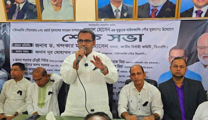 সোমবার (২৪ নভেম্বর) সকালে দাউদকান্দি পৌরসভা ৮ নং ওয়ার্ড যুবদলের সাধারণ সম্পাদক মো. কামাল হোসেনের মৃত্যুতে এক স্মরণ সভা অনুষ্ঠানে প্রধান অতিথির বক্তব্যে এসব কথা বলেন তিনি।