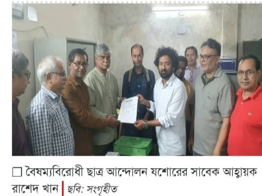 জুলাই গণঅভ্যুত্থানে আলোচনায় আসা যশোরের অন্যতম ছাত্রনেতা রাশেদ খান আসন্ন ত্রয়োদশ জাতীয় সংসদ নির্বাচনে যশোর-৩ (সদর) আসনে প্রতিদ্বন্দ্বিতা করতে মনোনীত হতে চান। সে লক্ষ্যেই তিনি কাস্তে মার্কার মনোনয়ন আবেদন ফরম সংগ্রহ করেছেন।