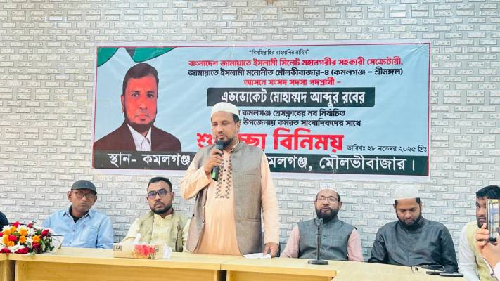 বাংলাদেশ জামায়াতে ইসলাম ক্ষমতায় গেলে সকল শ্রেণি-পেশার মানুষকে সঙ্গে নিয়ে ন্যায়ভিত্তিক ও ইনসাফের বাংলাদেশ প্রতিষ্ঠা করা হবে বলে মন্তব্য করেছেন মৌলভীবাজার-৪ (শ্রীমঙ্গল–কমলগঞ্জ) আসনে জামায়াতে ইসলামের প্রার্থী অ্যাডভোকেট মোহাম্মদ আব্দুর রব। শুক্রবার (২৮ নভেম্বর) দুপুরে কমলগঞ্জ প্রেসক্লাবে স্থানীয় সাংবাদিকদের সঙ্গে মতবিনিময়কালে তিনি এসব কথা বলেন।
