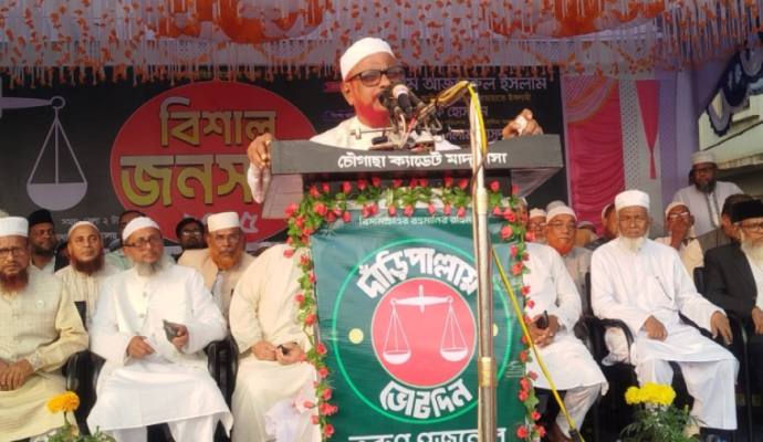 জামায়াতের নায়েবে এই আমীর একটি রাজনীতিক দলকে সমালোচনা করে বলেন, ‘আমাদের বিরুদ্ধে অভিযোগ করা হয়, আমরা অমুসলিমদের মুসলমান বানাবো। আপনারা দেখেছেন আওয়ামী লীগের আমলে মন্দিরে হামলা করে জামায়াত শিবিরকে দায়ী করা হয়েছে। অথচ গত দুই বছরে জামায়াত-শিবিরের কর্মীরা মন্দির পাহারা দিয়েছে। সারাদেশে দাড়িপাল্লার জোয়ার উঠেছে। এটা জোয়ারে ভীত হয়ে আমাদের উপর হামলা করার চেষ্টা করছে। আমরা পরিস্কার বলতে চাই আমরা কারও উপর হামলা করবো না। তবে কেউ হামলা করতে আসলে দুই হাত নিয়ে যেতে পারবে না। তিনি বলেন, যুবকরা ভোটকেন্দ্র পাহারা দেবেন। যারা আক্রমণ করতে আসবে তাদের যেমন দুই হাত আছে। আমরা আমাদেরও দুই হাত আছে। আমরা প্রতিহত করবো।