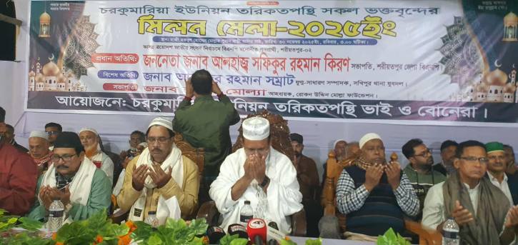 শরীয়তপুরের চরকুমারিয়া ইউনিয়নে তরিকতপন্থি ভক্তবৃন্দের উদ্যোগে আয়োজিত মিলন মেলা–২৫ এ দেশনেত্রী বেগম খালেদা জিয়ার রোগমুক্তি ও সুস্থতা কামনায় বিশেষ দোয়া অনুষ্ঠিত হয়েছে।