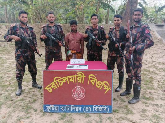 বিজিবি সূত্র জানায়, গোপন তথ্যের ভিত্তিতে কুষ্টিয়া ব্যাটালিয়ন (৪৭ বিজিবি) এর বিশেষ টহল দল সীমান্ত পিলার ৮৪/২-এস হতে ১৫০ গজ বাংলাদেশ অভ্যন্তরে আতারপাড়া সীমান্ত এলাকায় অভিযান চালিয়ে অস্ত্র ব্যবসায়ী আরিফুল ইসলামকে আটক করা হয়। এসময় তার কাছ থেকে একটি বিদেশি পিস্তুল, দু’টি ম্যাগাজিন ও ৩ রাউন্ড গুলি উদ্ধার করা হয়। যার আনুমানিক সিজার মূল্য ১ লাখ ২০ হাজার ৬০০ টাকা বলে বিজিবি সূত্র নিশ্চিত করেছে।
