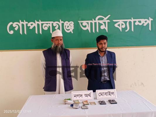 গোপালগঞ্জে সাংবাদিক পরিচয়ে চাঁদাবাজির অভিযোগে দুই ব্যক্তিকে আটক করেছে সেনাবাহিনী।