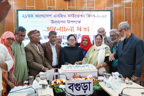 অনুষ্ঠানের শেষে বগুড়ায় বিএনএফের কার্যক্রমে জড়িত বেসরকারি স্বেচ্ছাসেবী সংস্থাগুলোর নির্বাহী প্রধানদের সাথে নিয়ে ২১তম প্রতিষ্ঠাবার্ষিকীর কেক কেটে আনন্দ উদযাপন করেন প্রধান অতিথি সালমা আক্তার।
