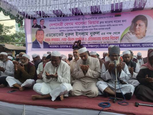 সুনামগঞ্জে খালেদা জিয়ার আরোগ্য কামনায় খতমে কোরআন, দোয়া মাহফিল ও খাবার বিতরণ