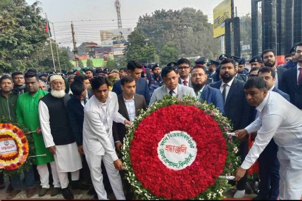 স্মৃতিসৌধে অর্ঘ্য নিবেদনের পর, ঝিনাইদহের রাজপথ মুখরিত হলো বিভিন্ন রাজনৈতিক দলের পৃথক পদযাত্রায়।