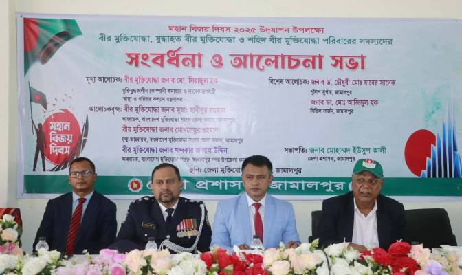 আজ ১৬ ডিসেম্বর মঙ্গলবার মহান বিজয় দিবস–২০২৫ উপলক্ষে জামালপুর জেলার মুক্তিযোদ্ধা কমপ্লেক্স ভবনে বীর মুক্তিযোদ্ধা, যুদ্ধাহত বীর মুক্তিযোদ্ধা এবং শহীদ বীর মুক্তিযোদ্ধা পরিবারবর্গের সম্মানে এক সংবর্ধনা অনুষ্ঠান অনুষ্ঠিত হয়।