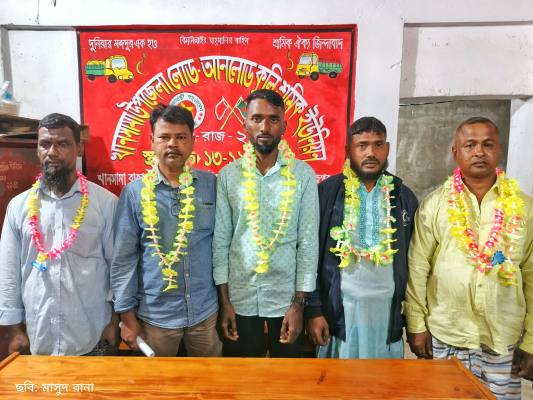 ছবির ক্যাপশন: দিনাজপুরের খানসামা উপজেলা লোড-আনলোড কুলি শ্রমিক ইউনিয়নের ত্রি-বার্ষিক নির্বাচনা বিজয়ীগণ।