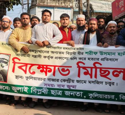 হাদি হত্যার বিচার দাবিতে কুলিয়ারচরে বিক্ষোভ
