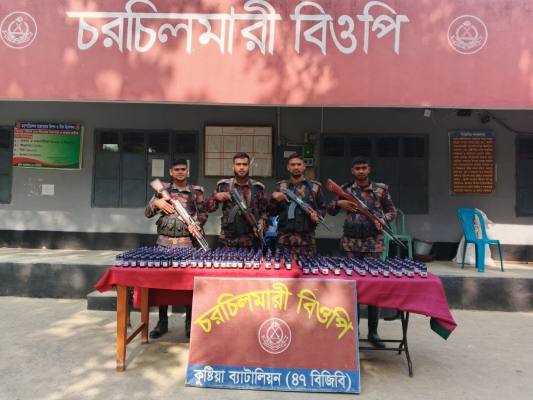 বিজিবি সূত্র জানায়, সুনির্দিষ্ট গোয়েন্দা তথ্যের ভিত্তিতে বুধবার রাত ১১.৩০টায় কুষ্টিয়া ব্যাটালিয়ন (৪৭ বিজিবি) এর অধীনস্থ ধর্মদাহ বিওপির দায়িত্বপূর্ণ এলাকার সীমান্ত পিলার ১৪৭/৯-আর হতে আনুমানিক ১৫০ গজ বাংলাদেশের অভ্যন্তরে ধর্মদাহ গ্রামে হাবিলদার মো. আলহাজ্ব দলিল উদ্দিন এর নেতৃত্বে বিজিবি’র টহল অভিযান চালিয়ে মালিকবিহীন অবস্থায় ভারতীয় ৩০ বোতল মদ ও ৫০০ পিস সিলডিনাফিল ট্যাবলেট উদ্ধার করে।