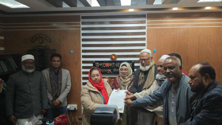 সোমবার (২৯ ডিসেম্বর) দুপুরে বিরামপুর উপজেলা নির্বাহী অফিসার ও সহকারী রিটার্নিং অফিসার তাহমিনা সুলতানা নীলার কার্যালয়ে নির্ধারিত নিয়ম অনুযায়ী মনোনয়নপত্র জমা দেওয়া হয়।