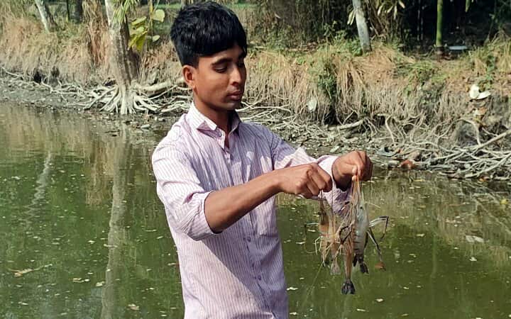 রাজু সরদার দীর্ঘদিন ধরেই মিশ্র পদ্ধতিতে কার্প জাতীয় মাছ চাষের সঙ্গে যুক্ত। তবে প্রচলিত চাষে লাভ সীমিত হওয়ায় রাজুর মাথায় নতুন কিছু করার চিন্তা ঘুরপাক খাচ্ছিল। ঠিক সেই সময় গত জুন মাসে স্থানীয় উন্নয়ন সংস্থা মৌসুমীর কৃষি ইউনিটের মৎস্য খাতের আওতায় “উত্তম ব্যবস্থাপনায় গলদা চিংড়ি চাষ” শীর্ষক একটি প্রদর্শনীর সুযোগ আসে তার হাতে।