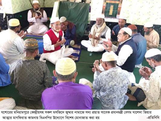সদ্য প্রয়াত সাবেক প্রধানমন্ত্রী ও বিএনপির চেয়ারপার্সন বেগম খালেদা জিয়ার আত্মার মাগফিরাত কামনায় মনিরামপুরে বিভিন্ন মসজিদে বিশেষ দোয়া মাহফিল অনুষ্ঠিত হয়েছে।