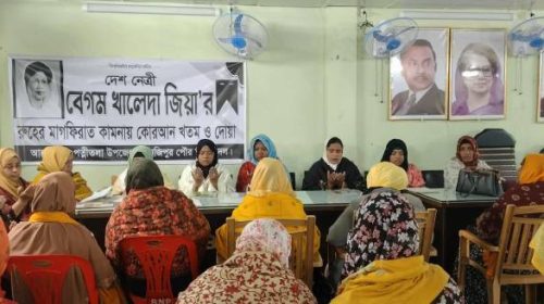 কেদ্রীয় জামে মসজিদে অনুষ্ঠিত দোয়া মাহফিলে উপজেলা বিএনপির সভাপতি অ্যাডভোকট শহীদ ইকবাল হোসেন, পৌর বিএনপির সভাপতি খায়রুল ইসলাম, সাধারণ সম্পাদক আব্দুল হাই, থানা বিএনপির সহ-সভাপতি মকবুল ইসলাম রোহিতা এবং অন্যান্য বিএনপি নেতৃবৃন্দ উপস্থিত ছিলেন।
