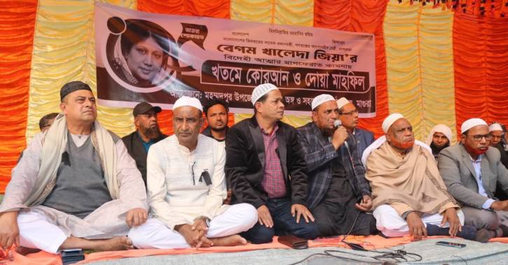 কোরআন খতম শেষে বেগম খালেদা জিয়ার রুহের মাগফিরাত কামনা করে দেশ ও জাতির শান্তি-সমৃদ্ধি এবং গণতন্ত্র পুনরুদ্ধারের জন্য বিশেষ মোনাজাত পরিচালনা করেন মাওলানা আবু তালহা।