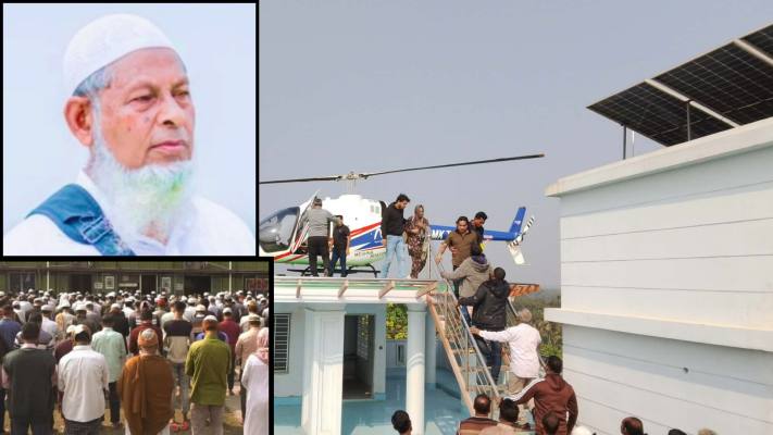 হেলিপ্যাডে অবতরণের মুহূর্তে পুরো এলাকায় নেমে আসে এক নিস্তব্ধতা। কোনো উচ্ছ্বাস কিংবা কোলাহল নয়—চারদিকে শুধু চোখের জল আর ভারী শ্বাসের শব্দ। স্বজন ও প্রতিবেশীরা নীরবে প্রত্যক্ষ করেন এক সন্তানের গভীর ভালোবাসা ও বাবাকে হারানোর অসহনীয় বেদনা।