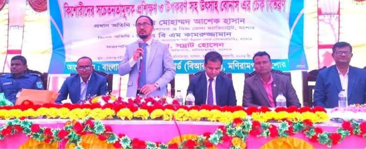 মনিরামপুরে একশ কিশোরীর সচেতনতামূলক প্রশিক্ষণ সম্পন্ন হওয়ার পরে উপকরণসহ উৎসাহ বোনাসের চেক বিতরণ অনুষ্ঠান অনুষ্ঠিত হয়েছে। বুধবার(১৪ জানুয়ারি )প্রধান অতিথি হিসেবে উপস্থিত থেকে জেলা প্রশাসক মোহাম্মদ আশেক হাসান কিশোরীদের হাতে চেক বিতরণ করেন।