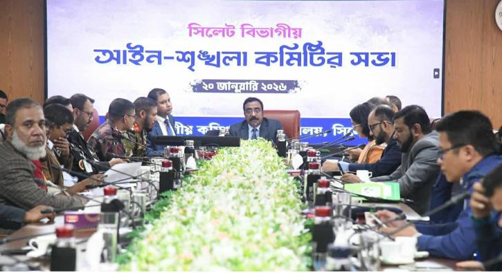সিলেট বিভাগীয় আইন-শৃঙ্খলা কমিটির সভা মঙ্গলবার (২০ জানুয়ারি) বিভাগীয় কমিশনার খান মোঃ রেজা-উন-নবী’র সভাপতিত্বে তাঁর কার্যালয়ের সম্মেলন কক্ষে অনুষ্ঠিত হয়।