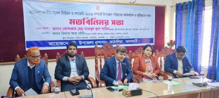 ঝালকাঠির কাঠালিয়ায় জাতীয় সংসদ নির্বাচন ও গনভোট সম্পর্কে মতবিনিময় সভা অনুষ্ঠিত হয়েছে।