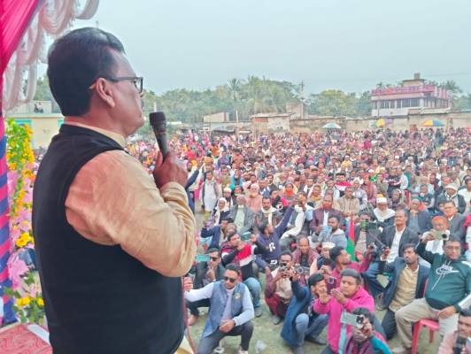 শনিবার (২৪ জানুয়ারি) বিকেলে তালা উপজেলার খেশরা ইউনিয়নের হরিহরনগর ফুটবল মাঠে আয়োজিত জনসভায় প্রধান অতিথির বক্তব্যে তিনি বলেন, “আমি যখন প্রথম নির্বাচনে অংশ নিই, তখন পায়ে হেঁটে ও গরুর গাড়িতে চলাচল করতে হতো। তখন থেকেই মানুষের দীর্ঘদিনের দাবি বাস্তবায়নে কাজ করে যাচ্ছি। আমার কাছে হিন্দু, মুসলমান ও বৌদ্ধ সবাই সমান। আমি কোনো হিন্দু পরিবারের ক্ষতি হতে দেব না।”