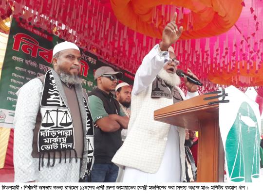 বুধবার (২৮ ডিসেম্বর)বিকেল ৫টায় চিতলমারী উপজেলার বড়বাড়িয়া শাহী ঈদগাহ মাঠে আয়োজিত জামায়াতে ইসলামীর নির্বাচনী জনসভায় প্রধান অতিথির বক্তব্যে তিনি এসব কথা বলেন। তিনি বলেন, জনগণ যদি দাড়িপাল্লা প্রতীকে ভোট দেয়, তাহলে এ এলাকার সার্বিক উন্নয়ন ও মানুষের ন্যায্য অধিকার নিশ্চিত করা হবে। তিনি সকল শ্রেণি-পেশার মানুষকে ঐক্যবদ্ধ হয়ে ইসলামী আন্দোলনের পক্ষে কাজ করার আহ্বান জানান।