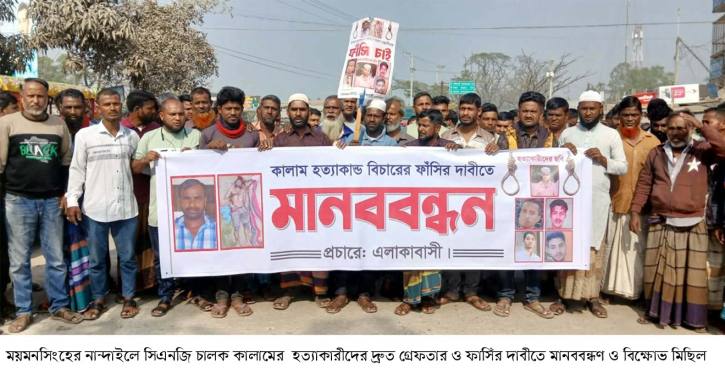 নান্দাইলে সিএনজি চালক কালাম হত্যাকারীদের গ্রেপ্তার ও ফাঁসির দাবিতে বিক্ষোভ