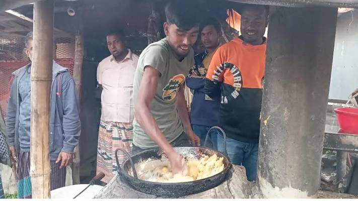 ফুটন্ত গরম তেলে খালি হাত ডুবিয়ে অনায়াসেই পিয়াজি ও সিংগারা ভাজছেন এক তরুণ। কোনো হাতল বা বিশেষ সরঞ্জাম ছাড়াই কড়াই থেকে খাবার তুলে আনার এই দৃশ্য দেখে রীতিমতো বিস্মিত স্থানীয়রা। নওগাঁর আত্রাই উপজেলার চকশিমলা চকবাজারে প্রতিদিনই এমন ব্যতিক্রমী দৃশ্যের সাক্ষী হচ্ছেন এলাকাবাসী।