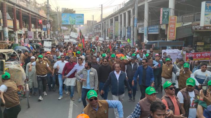 জনসভার আগে ‘ভোট দেব কিসে—ধানের শীষে, ১২ ফেব্রুয়ারি সারাদিন—ধানের শীষে ভোট দিন’ স্লোগানে বিএনপি ও অঙ্গসংগঠনের নেতাকর্মীরা শহীদ খুশি রেলওয়ে ময়দানে সমবেত হন। এরপর আলী নেওয়াজ মাহমুদ খৈয়মের নেতৃত্বে একটি গণমিছিল শহরের প্রধান সড়ক প্রদক্ষিণ করে পুনরায় একই স্থানে এসে শেষ হয়।