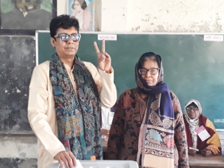 বাগেরহাট-১: ধানের শীষের প্রার্থী কপিল কৃষ্ণ মন্ডল মা’কে নিয়ে নিজ কেন্দ্রে ভোট দিলেন