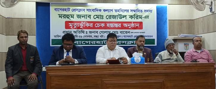 বাগেরহাট প্রেসক্লাবের প্রয়াত সভাপতির পরিবারকে মৃত্যুঝুঁকির চেক হস্তান্তর