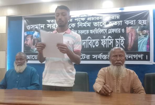 সংবাদ সম্মেলনে নিহতের চাচা মুনসুর আলী সরদার, আ. আসলাম সরদারসহ স্থানীয় ব্যক্তিবর্গ উপস্থিত ছিলেন।
