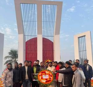 বাগেরহাটে মহান একুশে ফেব্রুয়ারি উপলক্ষে প্রথম প্রহরে শহীদ মিনারে শ্রদ্ধাঞ্জলি