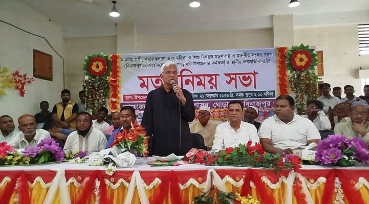 মহান শহীদ দিবস ও আন্তর্জাতিক মাতৃভাষা দিবসে দিনাজপুর-৬ আসনে প্রথম সরকারি সফরে এসে উন্নয়নের দৃঢ় বার্তা দিলেন সমাজকল্যাণ এবং মহিলা ও শিশু বিষয়ক মন্ত্রী ও দিনাজপুর-৬ আসনের সংসদ সদস্য ডাঃ এ জেড এম জাহিদ হোসেন। দুপুর ২টায় ঘোড়াঘাট উপজেলা অডিটোরিয়ামে অনুষ্ঠিত মতবিনিময় সভায় প্রধান অতিথির বক্তব্যে তিনি সামাজিক নিরাপত্তা ও মানবিক উন্নয়নকে অগ্রাধিকার দেওয়ার ঘোষণা দেন। আয়োজন করে ঘোড়াঘাট উপজেলা প্রশাসন।